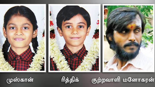 தினமும் வேனில் பள்ளிக்கு சென்று வந்தனர். கடந்த 2010 அக்டோபர் 29ம் திகதி காலை பள்ளி செல்வதற்கு வேனில் ஏறினர். பின்னர் வேன் டிரைவர் மோகன கிருஷ்ணன், நண்பன் மனோகரன் ஆகியோர் குழந்தைகளை க டத்தி சென்று பொள்ளாச்சி அருகே பா லியல் ப லாத்காரம் செய்தனர். பின்னர் குழந்தைகள் இருவரையும் கால்வாயில் தள்ளி கொ லை செய்தனர்.