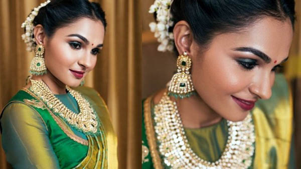 ஆனால், அவரோ காஞ்சி பட்டு, தலை நிறைய பூ, நெக்லஸ், வளையல், மோதிரம் என அடக்கமாக வந்திருந்தார். இது பலருக்கும், ஆச்சர்யத்தை ஏற்படுத்தியது. இருப்பினும், இந்த மாதிரி ஹோம்லி லுக்கிலும் ஆண்ட்ரியா ஆழகாக உள்ளார் என பேசிக்கொண்டனர். மேலும், ஆண்ட்ரியாவின் புகைப்படங்களும் சமூக வலைத்தளங்களில் வைரலாகி வருகிறது.