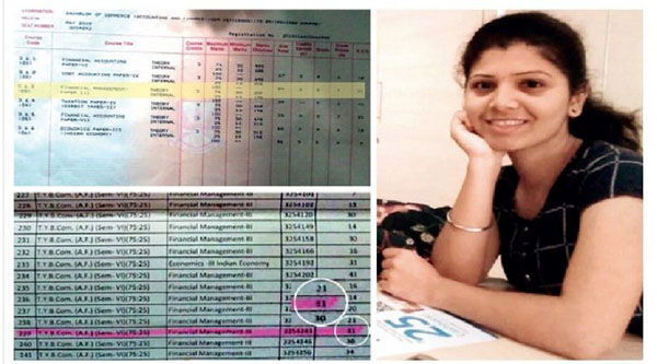 மும்பை எம்பிவி வால்யா கல்லூரியில், பி.காம் மூன்றாமாண்டு படித்து வந்த மாணவி ரிதி பராப். படிப்பில் எப்பொழுது கெட்டிக்காரியான ரிதி, தன்னுடைய செமஸ்டர் தேர்வுகள் முடிந்தததும், எப்படியும் 80 சதவிகித தேர்ச்சியுடன் வெற்றி பெற்றிடுவேன் என தோழிகளிடம் மகிழ்ச்சி தெரிவித்துள்ளார். ஆனால் தேர்வு முடிவு வந்ததும், நிதி மேலாண்மை பாடத்தில் 20 மதிப்பெண்கள் மட்டுமே பெற்றிருந்ததாக வந்துள்ளது.