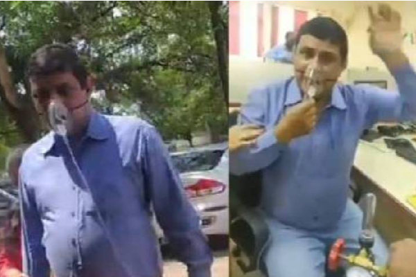 ஜார்க்கண்ட் மாநிலதில் வங்கி அதிகாரி ஒருவர் ஆக்சிஜன் மாஸ்க்குடன் வேலைக்கு வந்து அதிர்ச்சியை ஏற்படுத்தியுள்ளார்.