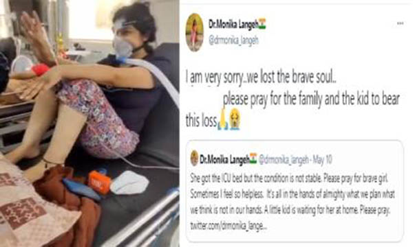 டெல்லியை சேர்ந்த மருத்துவர் மோனிகா லங்கே, சில நாள்களுக்கு முன் தன் சமூகவலைதள பக்கத்தில் பாசிட்டிவிட்டியின் உதாரணமாகப் பதிவிட்டிருந்த, கொரோனாவால் பாதிக்கப்பட்டிருந்த பெண், நேற்று உயிரிழந்த செய்தி, தற்போது பலரையும் சோகத்தில் ஆழ்த்தியுள்ளது.