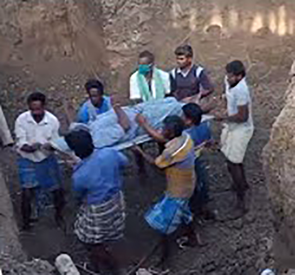 ஆறு அ டி ப ள்ளத்தில் வி ழுந்துவிட்டதால், சிறுவர்கள் உடனடியாக தாத்தையங்கார் பேட்டை கா வல் நிலைய ஆய்வாளர் கண்ணதாசனுக்கு தகவல் கொடுத்தனர்.