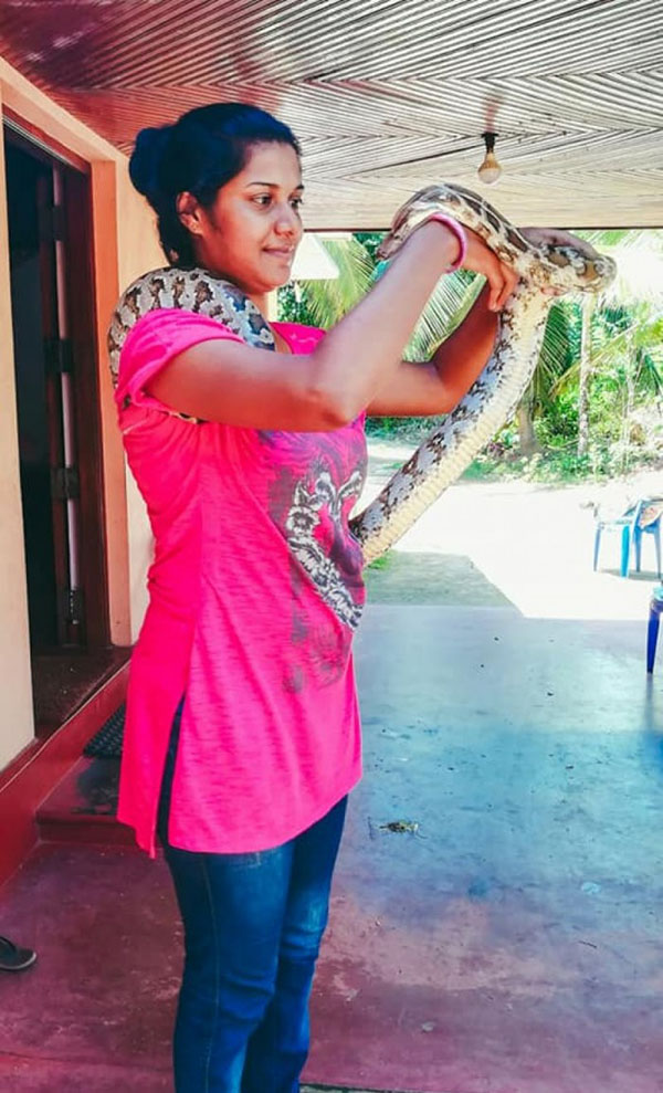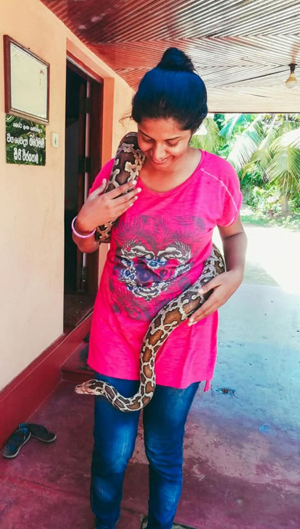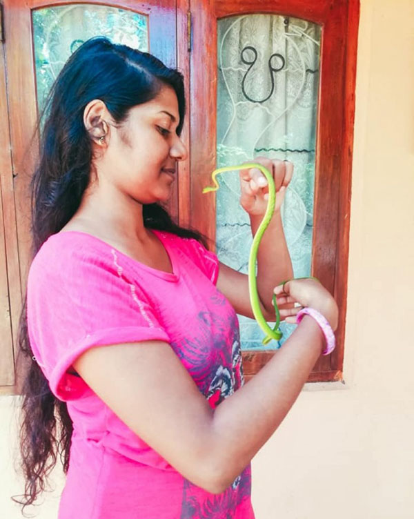 கம்பஹாவை சேர்ந்த பாக்யா மிஹிரனி, பல வகையான பாம்புகளுடன் நட்பாக பழகி வருகிறார். அவர் பாம்புகளுடன் செல்ல பிராணி போன்று விளையாடுவதாக தெரிவிக்கப்படுகின்றது.