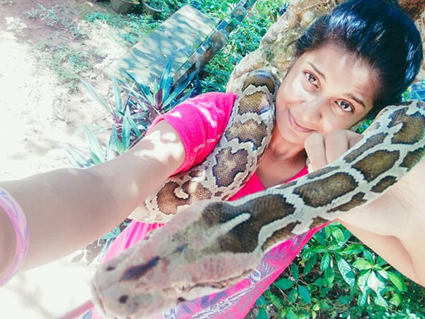 அவருக்கு பாம்புடன் பழக எந்த விதமான பயமும் இல்லை என குறிப்பிட்டுள்ளதுடன், அதனை உறுதி செய்யும் வகையிலான புகைப்படங்கள் இணையத்தில் வெளியாகியுள்ளது.