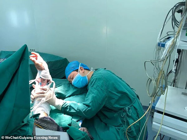 அந்த நோயாளிக்கு அப்போது அறுவை சிகிச்சை செய்யாதிருந்தால், அவர் தனது கையை இழக்க நேரிட்டிருக்கும் என்கிறார் Shanpeng. அவர் தூங்கும் படத்தைக் காட்டி அதைக் குறித்துக் கேட்டால், சற்று ஓய்வெடுப்பதற்காக கண்களை மூடினேன், ஆனால் தூங்கிவிடுவேன் என்று நினைக்கவில்லை என்கிறார்.