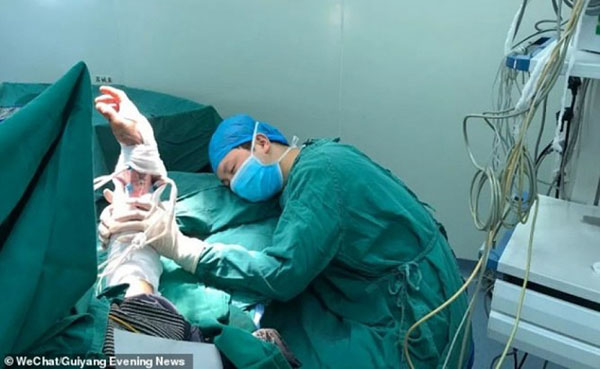 20 மணி நேரம் தொடர்ந்து ஓய்வின்றி அறுவை சிகிச்சைகள் செய்ததாக தெரிவிக்கும் Shanpeng, அந்த நோயாளியின் கையில் போடப்பட்ட கட்டு காய்வதற்குமுன், அவர் கையை கீழே வைத்து விடக்கூடாது என்பதற்காகவே அவரது கையைப் பிடித்துக் கொண்டே இருந்ததாக தெரிவிக்கிறார். அதுமட்டுமின்றி நோயாளியின் கையில் சரியான இரத்த ஓட்டம் நடப்பதற்கும் இது அவசியம் என்கிறார் Shanpeng.