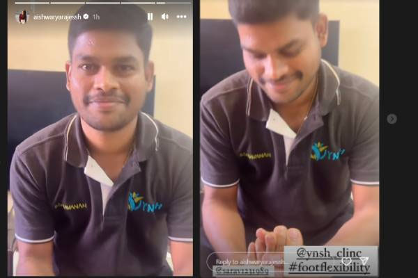அதில் அவர், சரவணன், ஆயுதங்கள் வச்சி foot flex பண்ணுவாரு. கொஞ்சம் வலிக்கும் அவ்ளோதான். சரவணன் வலிக்காம பண்ணுங்க என்று ஐஸ்வர்யா ராஜேஷ் கூறியுள்ளார். அந்த வீடியோ இணையத்தில் வைரலாகி வருகிறது