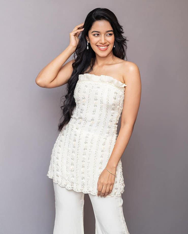 கோப்ரா, போகரோ என தமிழ், தெலுங்கு, கன்னட மொழி படங்கள் கைவசம் வைத்துள்ளார். இவர், கோப்ரா படத்திற்காக ஹைதராபாத் ப்ரமோஷன் சென்றிருந்தபோது வெள்ளை நிற மாடன் உடை அணிந்து தனது முன் அழகுகள் அனைத்தும் எடுப்பாக தெரியும் படி போஸ் கொடுத்துள்ளார்.