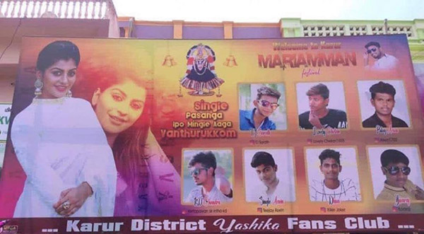 கோவில் திருவிழாவிற்கு யாஷிகா புகைப்படத்தை போட்டு பேனர் அடித்துள்ளனர், இதில் யாஷிகா பேன்ஸ் க்ளப் என்றும் பதிவு செய்துள்ளனர், நீங்களே இதை பாருங்கள்…