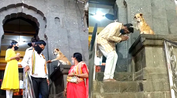 மகாராஷ்டிராவில் கோவிலுக்கு வழிபட வரும் பக்தர்களை, நாய் ஒன்று கைகொடுத்து ஆசிர்வாதம் வழங்கிவரும் வீடியோ இணையத்தில் வைரலாகிவருகிறது. இந்திய மாநிலம் மகாராஷ்டிராவில், அகமத்நகர் மாவட்டத்தில் சித்தி விநாயகர் கோயில் உள்ளது.