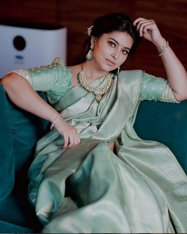 இந்நிலையில், புடவையில் அழகாக அவர் போஸ் கொடுத்து பகிர்ந்துள்ள புகைப்படங்கள் லைக்ஸ்களை குவித்து வருகிறது.