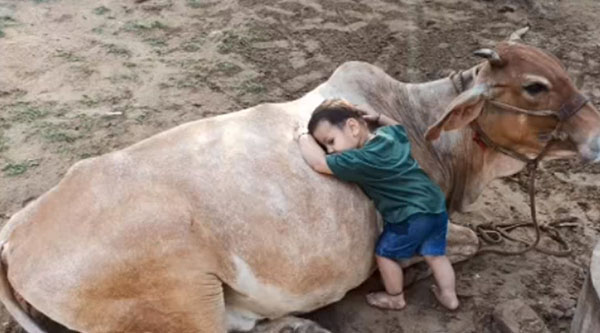 வீட்டு செல்ல நாய்க் குட்டியோடு நெருக்கமாக இருக்கும் கு ழந்தைகளைப் போல மூன்றுவயது கூட நிரம்பாத சிறுவன் ஒருவன் மாடுடன் கொஞ்சி விளையாடும் காணொளிகள் வைரலாகி ஆச்சரியத்தினை ஏற்படுத்தியுள்ளது.