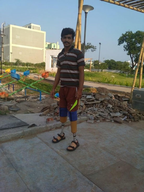 தமிழ்நாட்டில் ஐந்து மாதங்களுக்கு முன், ரயில் விபத்தில் கால்களைப் பறிகொடுத்த விஜய் என்பவர் செயற்கைக் கால்களுடன் நடக்க ஆரம்பித்துள்ளதாக அவர் மனைவி ஷில்பா கூறியுள்ளார்.