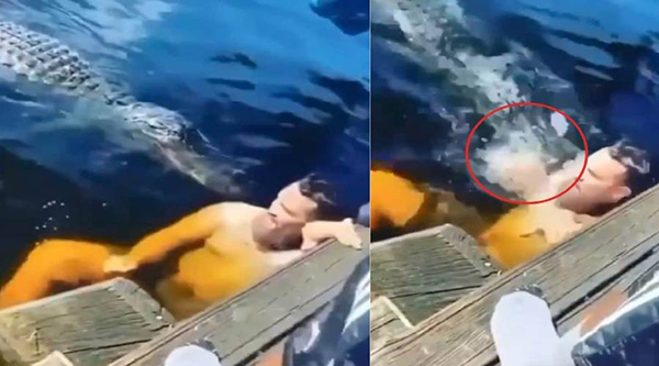 பயத்தில் நடுங்கிப்போன அந்த நபர், அந்த முதலையை அழுத்திவிட்டு நொடியில் தண்ணீரில் இருந்து மேலே ஏறி தப்புகிறார். இந்த வீடியோ இணையத்துல் வைரலாக பலரும் இதுபோன்ற விபரீத முயற்ச்சிகளில் ஈடுபட வேண்டாம் என திட்டி தீர்க்கின்றனர்.