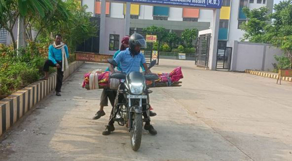 இறந்த தாயின் உடலை மரப்பலகையில் கட்டி இருசக்கர வாகனத்தில் 80 கிலோ மீட்டர் தொலைவில் உள்ள கிராமத்திற்கு அவரது மகன்கள் எடுத்துச் சென்ற சம்பவம் பேரதிர்ச்சியை ஏற்படுத்தியுள்ளது.