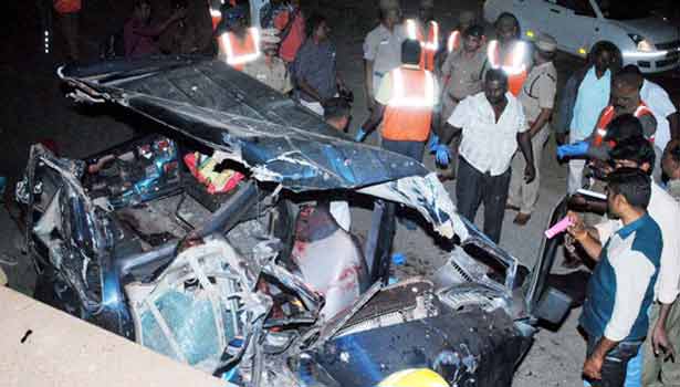 வேலூர் மாவட்டம் தேசிய நெடுஞ்சாலையோரமுள்ள பெட்ரோல் பங்க்கில் இருந்து அதிவேகத்தில் வெளியே வந்த டிரெய்லர் லாரி ஒன்று, திடீரென எதிர்புறமாக திரும்பியது. கண் இமைக்கும் நேரத்தில் டிரெய்லர் லாரியில் கார் மோதி உருக்குலைந்தது.
