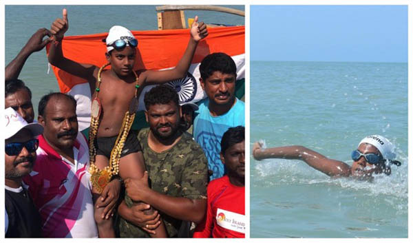 பாக்ஜலசந்தியை 10 மணி நேரத்தில் நீந்தி கடந்து குற்றாலீசுவரன் சாதனையை முறியடித்த தமிழக சிறுவனுக்கு பொதுமக்கள் பலரும் பாராட்டுக்களை தெரிவித்து வருகின்றனர்.