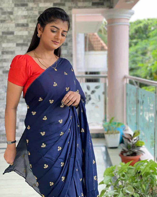 குடும்ப பாங்கான பெண் வேடத்தில் நடித்து அசத்துகிறார். இந்த சீரியல் வெற்றிகரமாக ஓடிக் கொண்டிருக்கின்றது. இந்நிலையில் தன்னுடைய இன்ஸ்டாகிராம் பக்கத்தில் புடவை அணிந்து புகைப்படங்கள் சிலவற்றை வெளியிட்டு ரசிகர்களின் கவனத்தை ஈர்த்துள்ளார்.