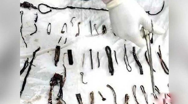 அப்போது மருத்துவர்கள் அவரை பரிசோதிப்பதற்காக, ஸ்கேன் எடுத்து பார்த்த போது அதிர்ச்சியடைந்தனர். ஏனெனில் அவரின் வயிற்றில் ஒன்றரை கிலோ இரும்புப் பொருள் இருந்தது.