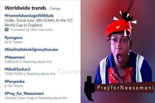 அந்த வரிசையில் #Pray_for_Neasamani, #PrayforNesamani என்ற ஹேஷ்டேக்கு இந்தியளவில் ட்ரெண்ட்டாக தொடங்க, என்னவென்று பலரும் பார்த்து உலகளவில் ட்ரெண்ட்டாக வைத்தனர். இதனிடையில் நேசமணி டிரண்டுக்கு வேறு காரணம் இருப்பதாக சமூவலைதளத்தில் சிலர் கூறி வருகிறார்கள்.