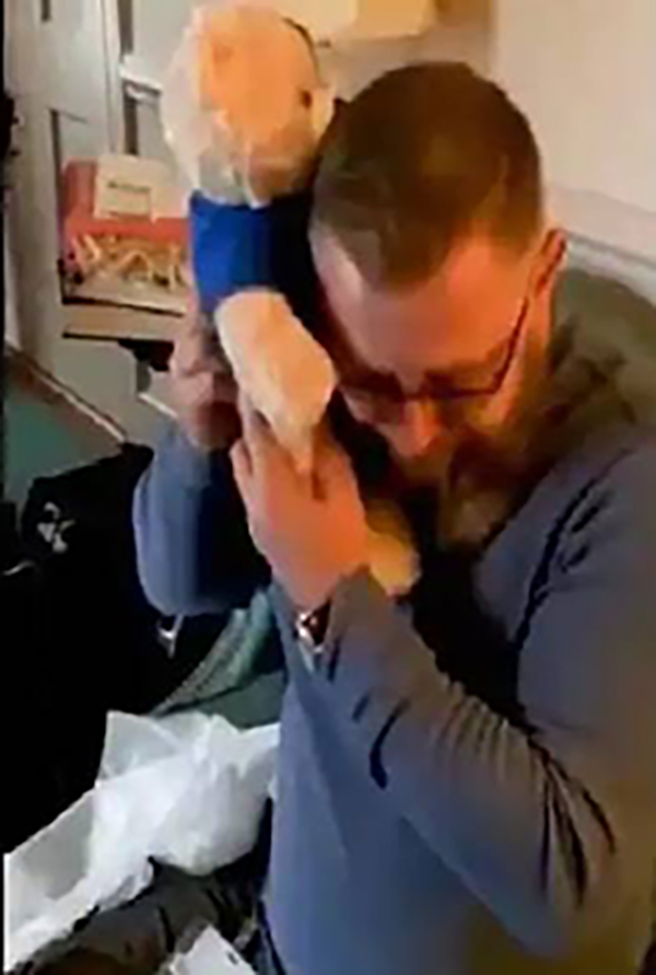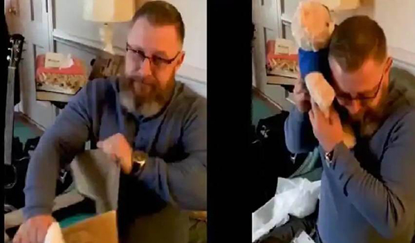 அந்த வீடியோவில் முதலில் அந்த த ந்தை பக்ஸை பிரித்ததும் அதில் ஒரு கடிதமும் எ ழு தப் பட்டிருந்தது. அதை ப டித்த அவர், உ ணர் ச் சி வசப்படுகிறார். அதன் பின்னர் அந்த டெடி பியர் பொம்மையை எடுத்து, அதன் இ த ய து டி ப் பை கேட்டதும், க ண்ணீர் விடுகிறார்.