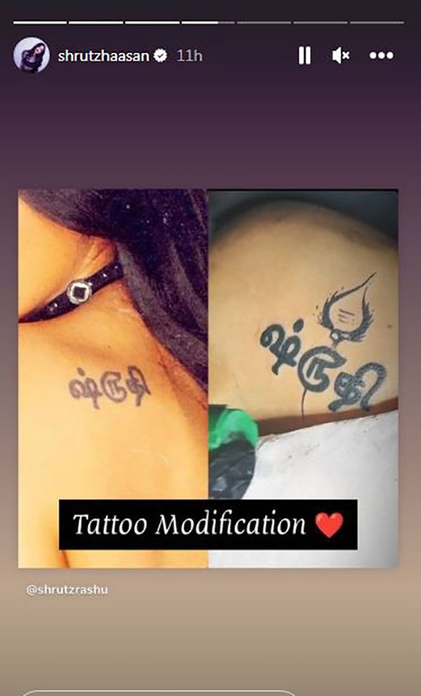 அவ்வப்போது காதலுடன் கட்டியணைப்பது, லிப்லாக் போன்ற நெருக்கமான புகைப்படங்களை வெளியிட்டு தங்களது காதலை வெளிப்படுத்துவார். இந்நிலையில் தற்போது சர்ச்சைக்குரிய வகையில் தனது உடம்பின் பின்புறத்தில் ‘ஷ்ருதி’ என அவரது பெயர் பச்சைகுத்தியதோடு,