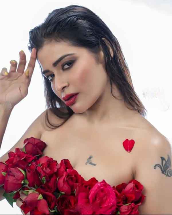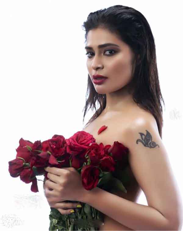 அந்த படம் மக்களிடையே சுமாரான வெற்றியை பெற்றது. தற்போது பட வாய்ப்புகளுக்காக மாடர்ன் உடை அணிந்து ரசிகர்களை ஈர்த்து வருகிறார் அந்தவகையில் தற்போது முன்னழகை பூவால் மறைத்து எடுப்பாக தெரிய கவர்ச்சி போஸ் கொடுத்து போட்டோஷூட் நடத்தி ரசிகர்களை சூடேற்றியுளார் அம்மணி .