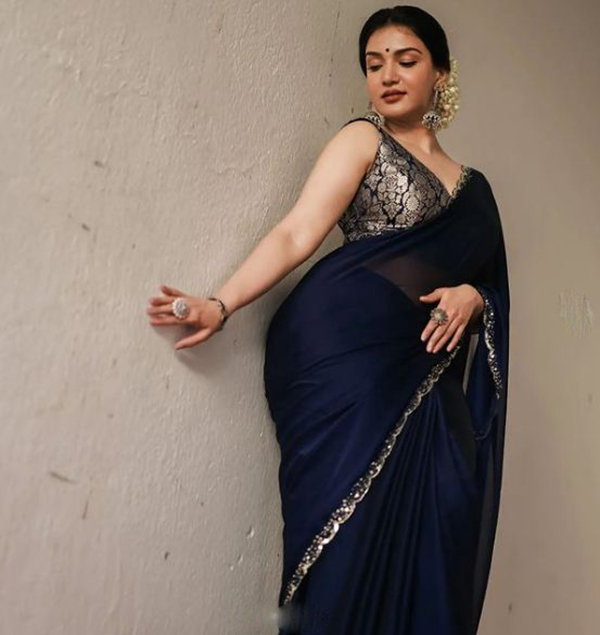 இந்நிலையில், தன்னுடைய இன்ஸ்டாகிராம் பக்கத்தில் Traneparent sleeveless Saree அணிந்து செம்ம ஹாட்டான சில புகைப்படங்களை வெளியிட்டு ரசிகர்களை புலம்ப வைத்துள்ளார் அம்மணி.