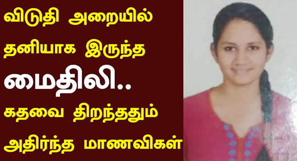 பின்னர் இரவு உணவு முடித்துவிட்டு அறைக்கு திரும்பிய மாணவிகள், மைதிலி தூ க்கில் தொ ங்குவதை பார்த்து பெரும் அ திர்ச்சியடைந்துள்ளனர்.