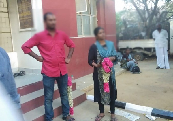 திருவள்ளூரை சேர்ந்தவர் கனகா. இவர் நேற்று மகளிர் காவல் நிலையத்துக்கு தனது காதலன் குமார் உடன் வந்தார்.இருவர் கையிலும் பூமாலை இருந்த நிலையில் கனகா உறவினர்களும் உடன் வந்தனர்.