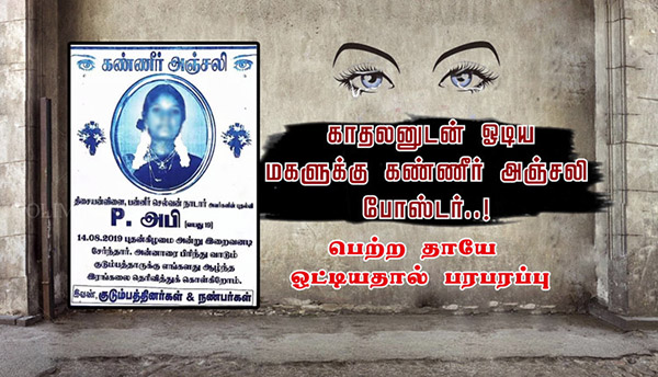 தமிழகத்தில் காதலனுடன் வீட்டை விட்டு ஓடிய கல்லூரி மாணவிக்கு, பெற்ற தாயே கண்ணீர் அஞ்சலி போஸ்டர் ஒட்டிய சம்பவம் பரபரப்பை ஏற்படுத்தியுள்ளது. நெல்லை மாவட்டத்தை சேர்ந்த பன்னீர்செல்வம்-அமராவதி தம்பதிக்கு 3 மகள்கள்.