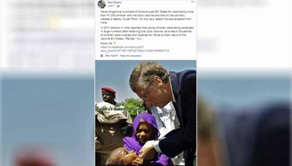 வைரலாகும் ப கீ ர் தகவலுடன் பில் கேட்ஸ் கு ழந் தை ஒன்றிற்கு போ லி யோ த டு ப்பு ம ரு ந்து கொ டு க்கும் பு கை ப்ப டமும் இணைக்கப்பட்டு இருக்கிறது.