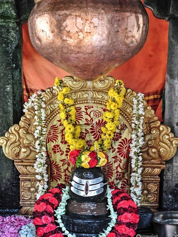 பொதுவாக மற்ற கோவில்களில் சிவலிங்கத்திற்கு எதிராக நந்தி தேவரின் சிலை இருக்கும் . ஆனால் இந்த கோவிலில் நந்தி தேவரின் சிலை சிவனின் தலைக்கு மேல் அமைக்கப்பட்டுள்ளது. நந்தி தேவரின் வாயிலிருந்து வழியும் நீர் எப்பொழுதும் சிவபெருமானை குளிர்வித்தபடி இருக்கிறது.