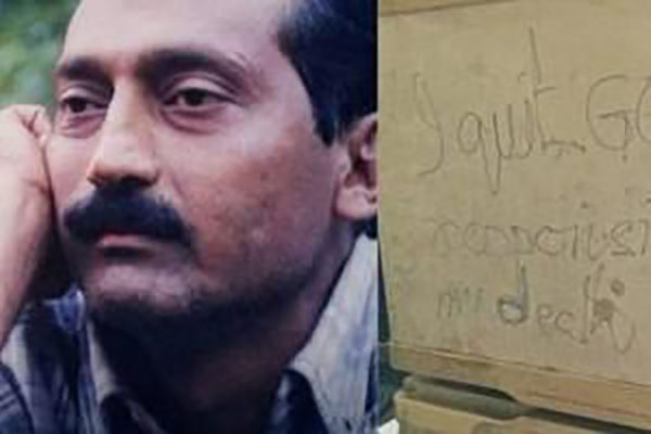 அதில் நான் செல்கிறேன், எனது மரணத்துக்கு இந்திய அரசாங்கம்தான் காரணம் என எழுதியிருந்தார். இதுதொடர்பாக பொலிசார் வழக்கு பதிவு செய்து விசாரித்து வருகின்றனர். அவரது உடல் பிரேதப் பரிசோதனை செய்யப்பட்டு அடக்கம் செய்யப்பட்டது.