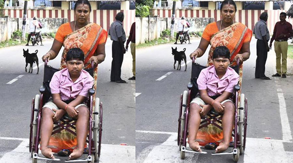 இந்நிலையில் தினேஷை அவரது அம்மா தினமும் காலையில் மூன்று சக்கர வண்டியில் அமரவைத்து தள்ளிக்கொண்டு வந்து சுமார் 1.கி.மீற்றர் தூரம் பள்ளி வகுப்பறையில் விடுகிறார். அதன் பின் மீண்டும் அதே வண்டியிலேயே அமர்ந்து பயிலும் தினேஷ்குமாருக்கு மதியம் ஒரு முறை வந்து உணவூட்டுகிறார்.