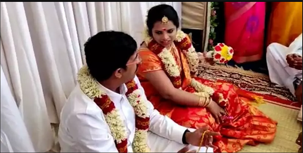 மணமக்கள் மணக்கோலத்தில் மேடையில் வீற்றிருந்தனர். படுகர் இன மரபுப்படி, மணமேடையில் மணப்பெண் 3 முறை சம்மதம் தெரிவித்த பின்பே தாலிகட்ட வேண்டும்.