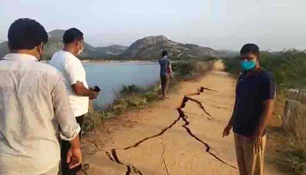 ஏரிக்கரையில் திடீர் பிளவு… பொதுமக்கள் அதிர்ச்சி!!