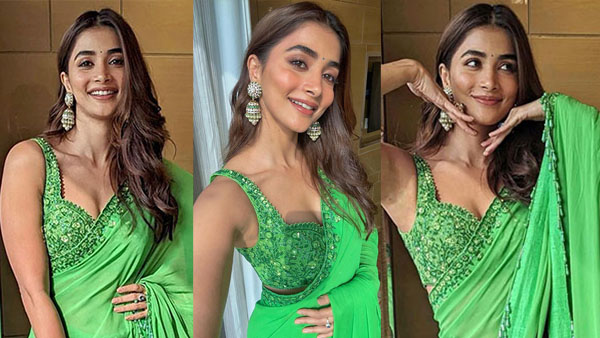 அதில், சல்மான்கானுக்கு ஜோடியாக நடித்தார். இப்போது மேலும், பல ஹிந்தி படங்களில் நடிக்க முயற்சி செய்து வருகிறார். ஒருபக்கம், அசத்தலான கவர்ச்சி உடைகளில் அழகை காட்டி தொடர்ந்து புகைப்படங்களையும் வெளியிட்டு வருகிறார். அந்த வகையில், பச்சை நிற புடவை மற்றும் கவர்ச்சியான ஜாக்கெட் அணிந்து பூஜா ஹெக்டே வெளியிட்டுள்ள புகைப்படங்கள் ரசிகர்களை சூடேத்தியுள்ளது.