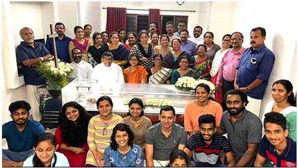 கேரளாவில் நடந்த இறுதி ஊர்வலத்தில் எடுக்கப்பட்ட புகைப்படம் ஒன்று சமூக வலைதளங்களில் வைரலாகி வருகிறது. காரணம்? அதில் குடும்ப உறுப்பினர்கள் சடலத்தைச் சுற்றி மகிழ்ச்சியுடன் காட்சியளிக்கிறார்கள்.