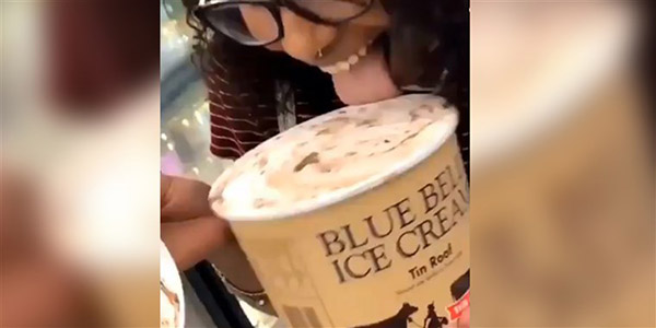 டெக்சாசில் சூப்பர் மார்க்கெட் ஒன்றிற்கு சென்ற இளம்பெண் ஒருவர், அங்கிருந்த பிரிட்ஜ் ஒன்றிலிருந்து ஐஸ் கிரீம் கண்டெய்னர் ஒன்றை எடுத்து, திறந்து, ஐஸ் கிரீமை நக்கிவிட்டு, மீண்டும் பிரிட்ஜுக்குள் வைத்து மூடி விட்டார்.