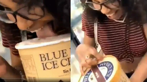அமெரிக்காவில் ஐஸ் கிரீம் கண்டெபெண்ணின் அடையாளம் தெரிந்ததுய்னர் ஒன்றை திறந்து நக்கிவிட்டு மீண்டும் பிரிட்ஜுக்குள் வைத்து மூடிச் சென்ற இளம்பெண்ணின் அடையாளம் தெரியவந்துள்ளதாக பொலிசார் தெரிவித்துள்ளனர்.