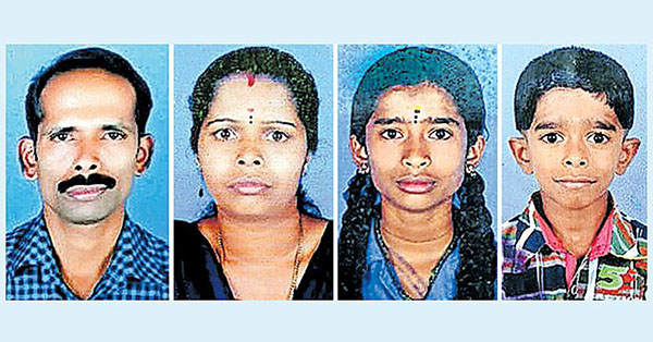 இந்தியாவின் கேரளாவில் ஒரே குடும்பத்தை சேர்ந்த நான்கு பேர் தற்கொலை செய்து கொண்டது சோகத்தை ஏற்படுத்தியுள்ளது. தாலப்புழா கிராமத்தை சேர்ந்தவர் வினோத் (48), இவர் மனைவி மினி (43). தம்பதிக்கு அனுஸ்ரீ (17) மற்றும் அபினவ் (12) என இரண்டு பிள்ளைகள் உள்ளனர்.