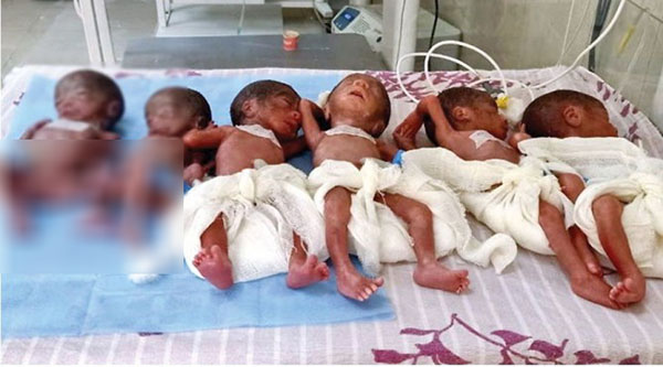 மத்தியரே பிரதேச மாநிலத்தை சேர்ந்த கர்ப்பிணி பெண் ஒருவருக்கு ஒரே பிரசவத்தில் 6 குழந்தைகள் பிறந்துள்ளன.