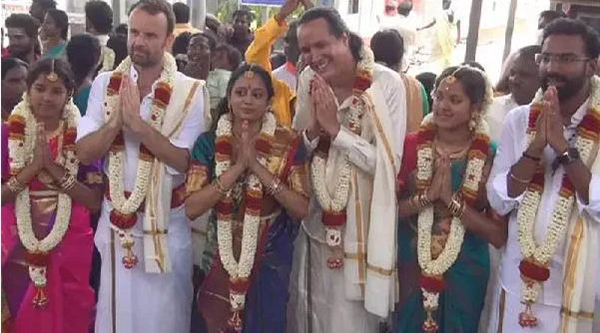 தமிழ்நாட்டின் முறைப்படி திருமணம் செய்து கொண்ட காயத்ரி – ஜார்ஜ், கீர்த்திகா- ராம்குமார், நாராயிணி – மஜ்ஜூ மணமக்களை உறவினர்கள் வாழ்த்தினர். அத்துடன் திருச்செந்தூர் கோவில் வளாகத்தில் நடைபெற்ற இந்த திருமணத்தை ஏராளமான பக்தர்கள் ஆச்சரியத்துடன் பார்த்தனர்.