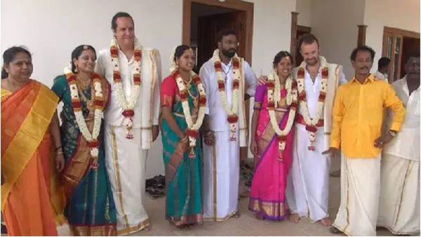 ஒரே வீட்டில் மூன்று தமிழ் பெண்களை திருமணம் செய்த பிரான்ஸ் நாட்டு மணமக்கள்!!