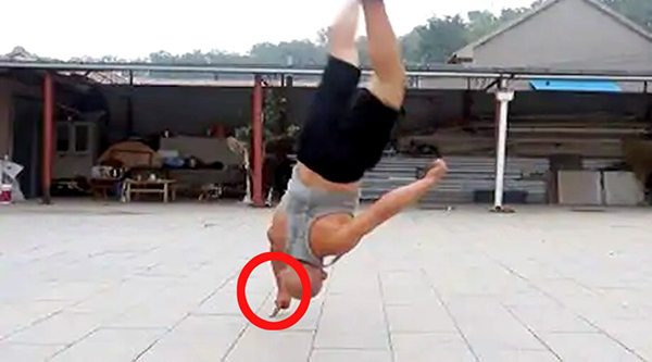 ஒற்றை விரலில் டைவ் அ டித்து அசத்தும் நபர்! 3 ஆண்டுகள் விடா முயற்சிக்கு கிடைத்த வெற்றி!!