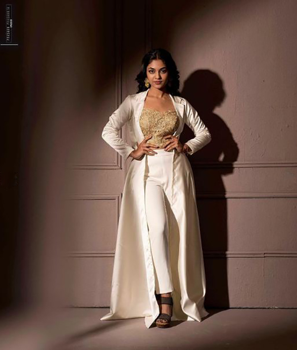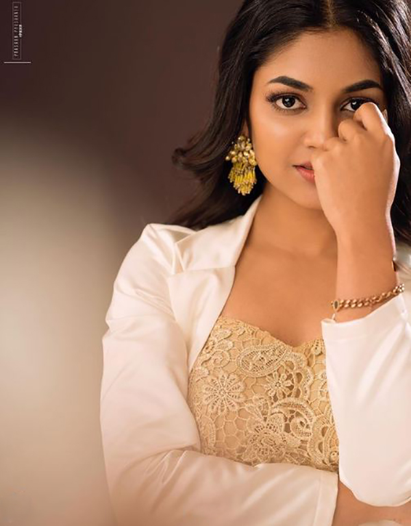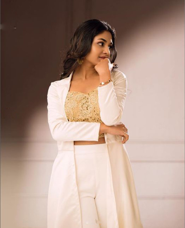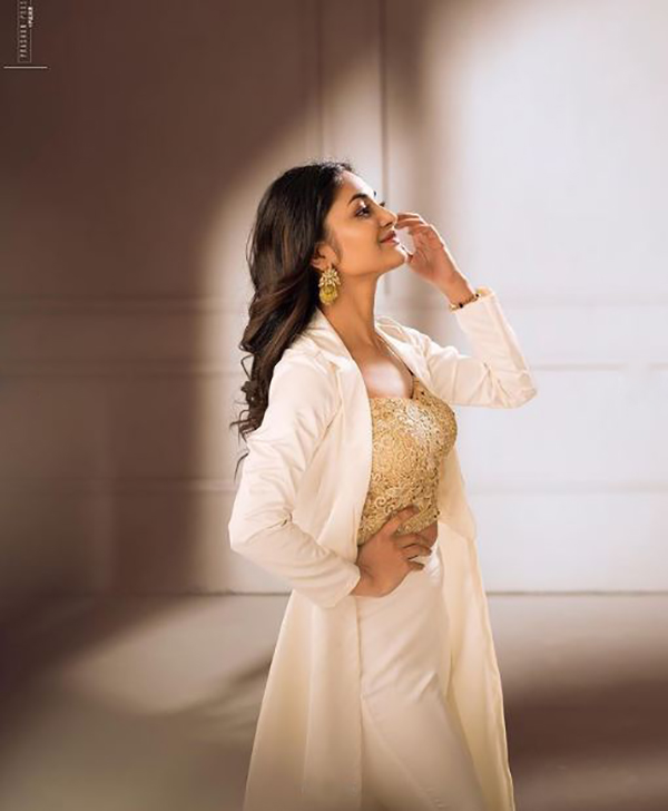 அதன்படி தற்போது இவர் வெளியிட்டு இருக்கக்கூடிய புகைப்படத்தில் வெள்ளை நிற பாவாடை அணிந்து அதற்கு மேட்ச் ஆக வெள்ளையில் தங்கத்தால் இளைத்தது போல ஒரு பிளவுஸையும் போட்டு வெண் நிற தேவதையாய் காட்சியளிக்கிறார்.