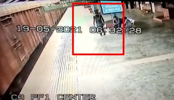 ஓடும் சரக்கு ரயிலில் ஏற முயன்று இடறி விழுந்த ஆர்பிஎஃப் வீரர்..! வெளியான திகிலூட்டும் CCTV வீடியோ!!
