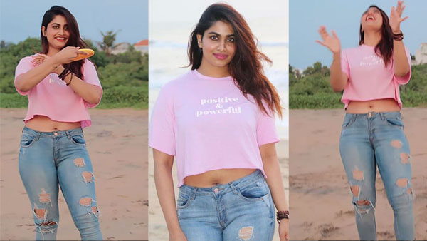 கடற்கரையில் அந்த இடத்தை காட்டி இளசுகளை இம்சை பண்ணும் ஷிவானி நாராயணன்!!