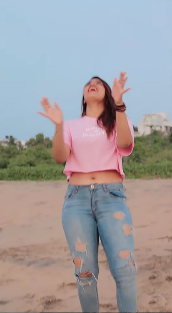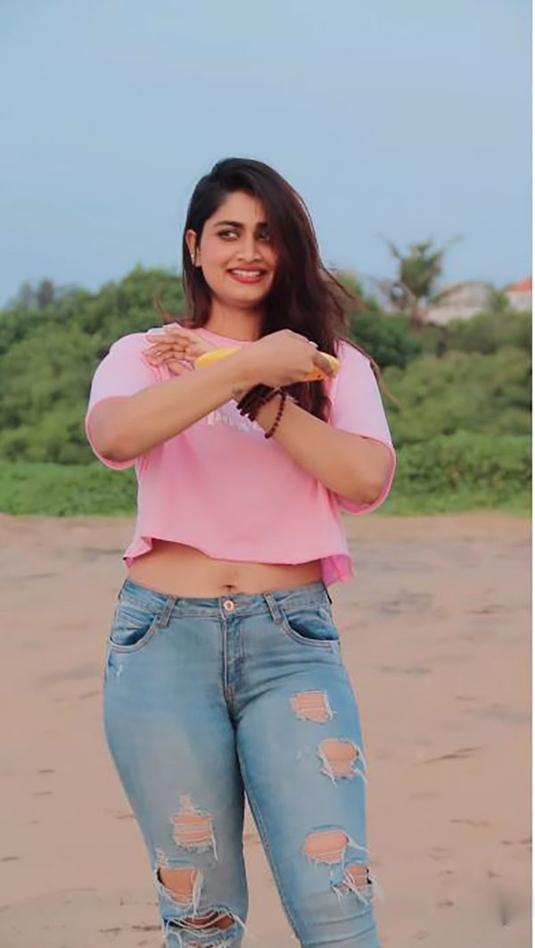 கடற்கரையில் அந்த இடத்தை காட்டி இளசுகளை இம்சை பண்ணும் ஷிவானி நாராயணன்!!